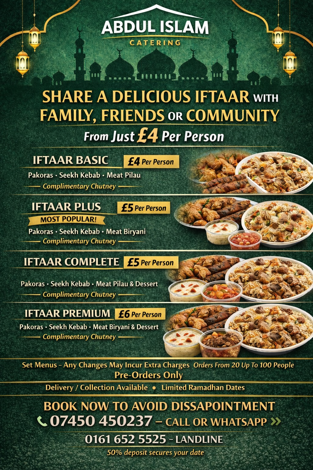 Posted on A KhanTrustindex verifies that the original source of the review is Google. I can't say enough great things about AI Catering! For every function our family has hosted, we've always turned to them, and they've never disappointed. The food is simply outstanding – each dish is bursting with flavour and made with such care and attention to detail. From appetizers to mains, everything is fresh, perfectly seasoned, and beautifully presented. A huge shoutout to Omar, Ismail, and Habib for always going above and beyond. Their dedication to quality and customer satisfaction shines through in everything they do. No matter the occasion, AI Catering has consistently delivered the best food, and they've become our go-to for all family events. If you're looking for a catering service that never lets you down, AI Catering is the way to go! From Sheeraz bhai and FamilyPosted on Zubair MahboobTrustindex verifies that the original source of the review is Google. Dealt with Habib Bhai, very friendly and always available to ask any queries! Food was amazing, people at the khatam sharif praised it! Would definitely recommend AI catering!Posted on Krista ScottTrustindex verifies that the original source of the review is Google. Food is always spot on 👍Posted on Leena ThomasTrustindex verifies that the original source of the review is Google. The food was delicious very tasty and excellent service. Fabulous work guys you done well with full effort to make customers happy and their wishes . Good team work and special thanks to Mr. NANDHU and his team.Posted on English infoTrustindex verifies that the original source of the review is Google. I have never eaten such a yummy halwa which i ate from them not even in pakistan.their halwa and biryani is yummy.. halwa is highly recommended. Try their halwa once literally you will love it.Posted on Miiec UK LimitedTrustindex verifies that the original source of the review is Google. Outstanding services, delicious food and friendly staff.Posted on Yousif AlsadoonTrustindex verifies that the original source of the review is Google. Amazing foodPosted on Usman AleemTrustindex verifies that the original source of the review is Google. I will definitely 100% recommend for everyone who are looking great food with great taste I had a very good experience with them food was fresh and quality and quantity I will definitely recommend with my friends and family for family functions and ceremonies customers service is really appreciate-ablePosted on JaveriaTrustindex verifies that the original source of the review is Google. AI Catering exceeded our expectations with their exceptional food and service. The dishes were, impressing all our guests. The team was punctual, professional, and handled every detail flawlessly. The food was 10/10. I highly recommend AI catering for any event that requires top-quality tasty catering.Posted on M H KhalidTrustindex verifies that the original source of the review is Google. The food was on point. Would highly recommend.